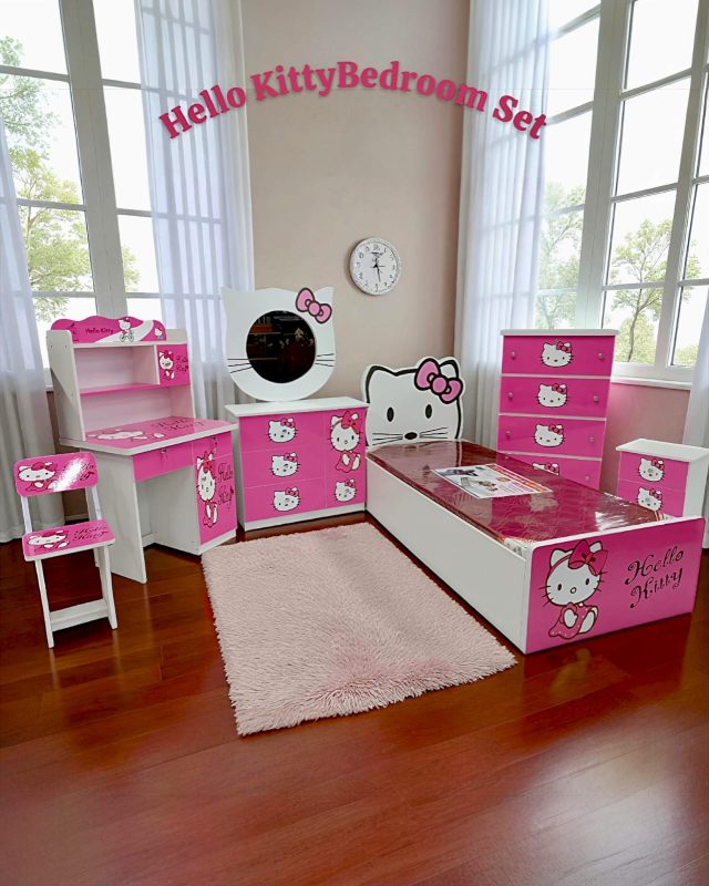 Adorable Hello Kitty kids’ dressing table with a cute mirror design and bright pink drawers. Perfect for adding fun, color, and functionality to your child’s room.