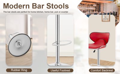 - ✔【ANTI-SKID AND EASY TO CLEAN】: The stool stands of our bar stools on a sturdy circular chrome steel base, which has a rubber ring to prevent your floor from scratching. And rubber ring of barstools also prevent the harsh sound when moving the bar chairs.PU leather and chrome steel base makes cleaning a breeze.Bar stools set of 2 kitchen bar stools swivel stool.