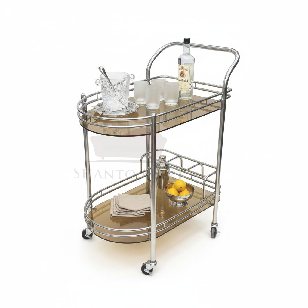 Premium 2-Tier Oval Service & Bar Trolley – Elegant Chrome Finish