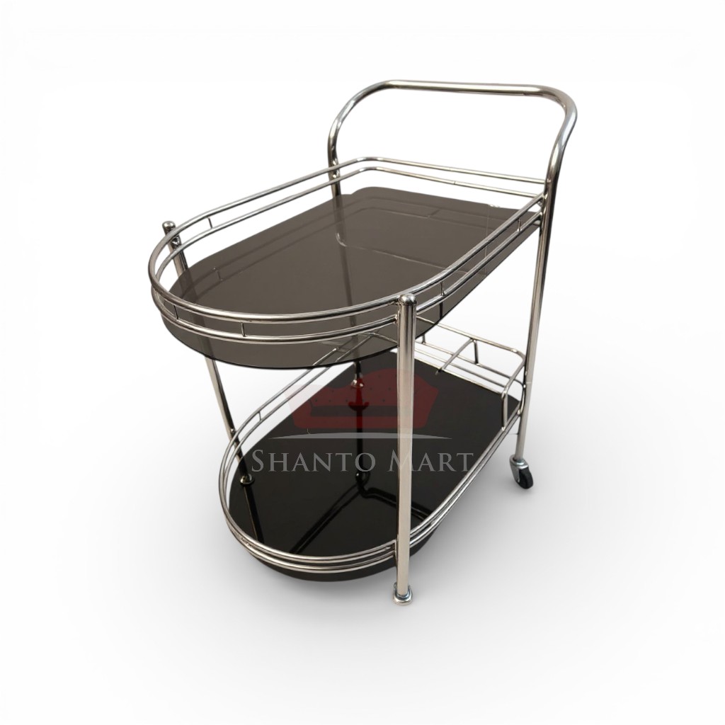 Upgrade your hosting experience and home aesthetics with our Premium 2-Tier Oval Service Trolley. Combining mid-century modern inspiration with contemporary functionality, this trolley is designed to be both a practical utility piece and a sophisticated decor element for your living space, dining area, or office.