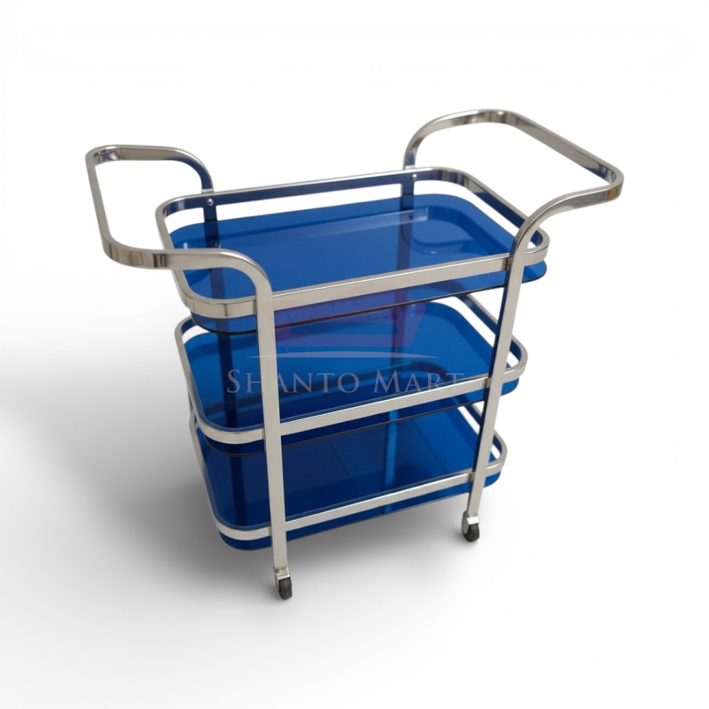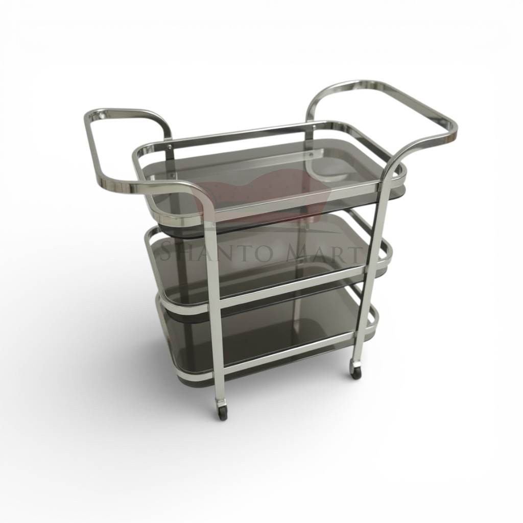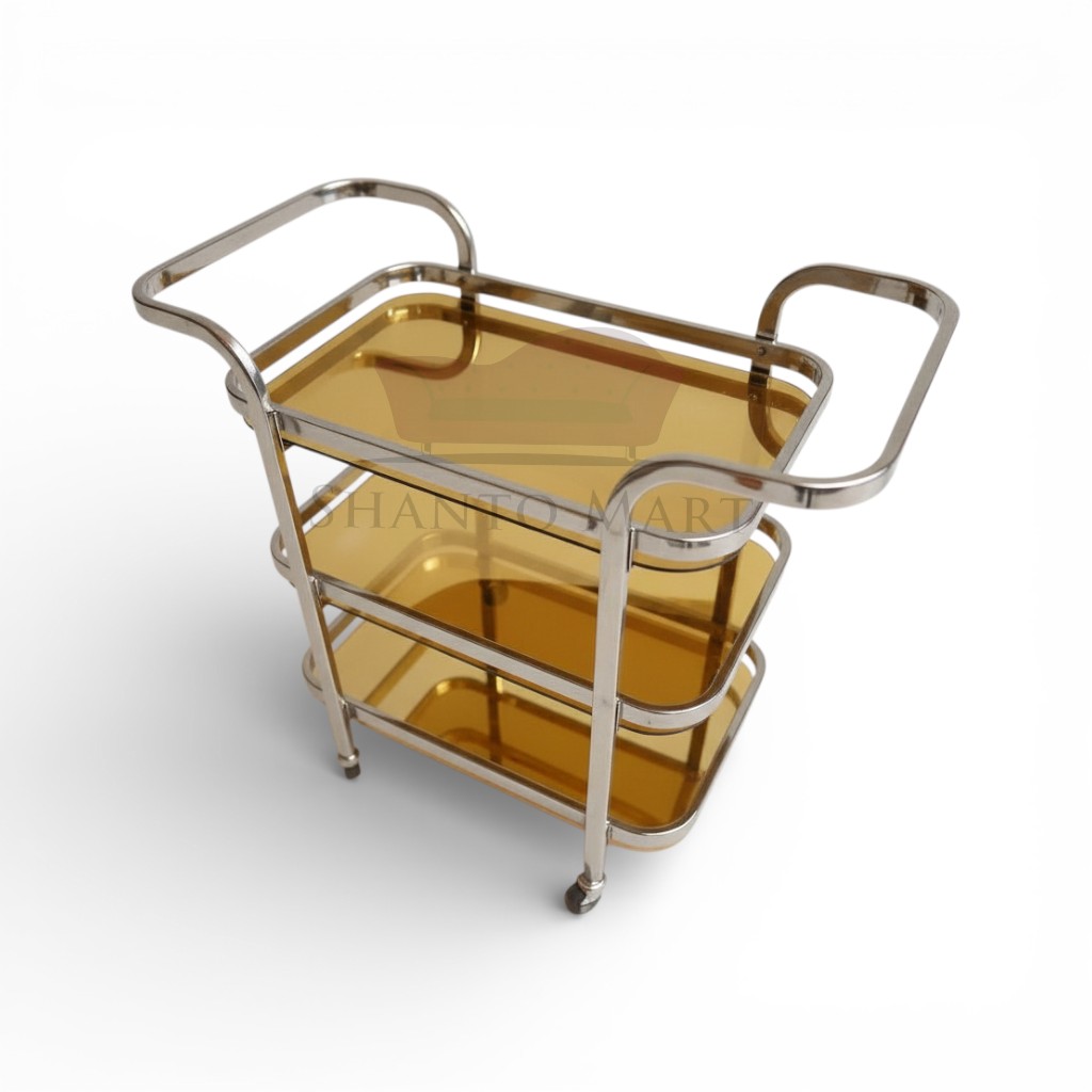 Elevate your home’s elegance and your hosting game with our Imperial 3-Tier Service Trolley. Designed for those who appreciate the finer things in life, this trolley combines a sleek, heavy-duty stainless steel frame with premium glass shelves, making it a masterpiece for your dining or living room.