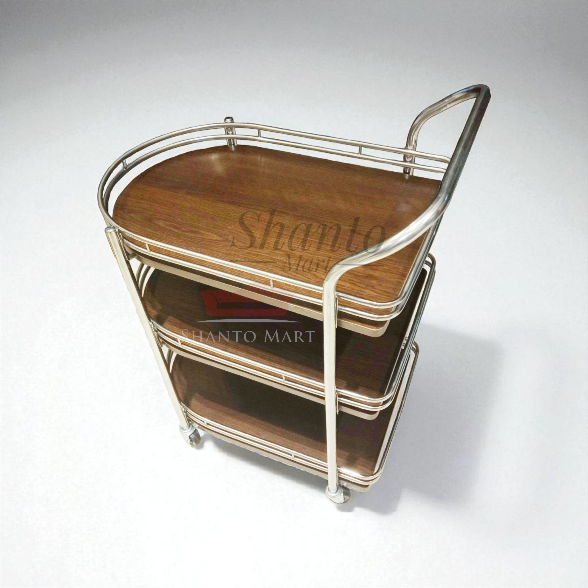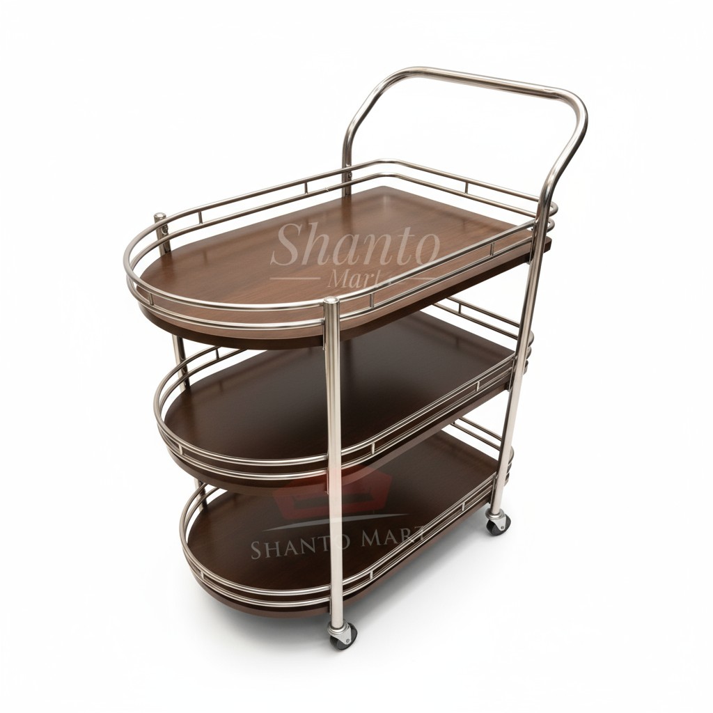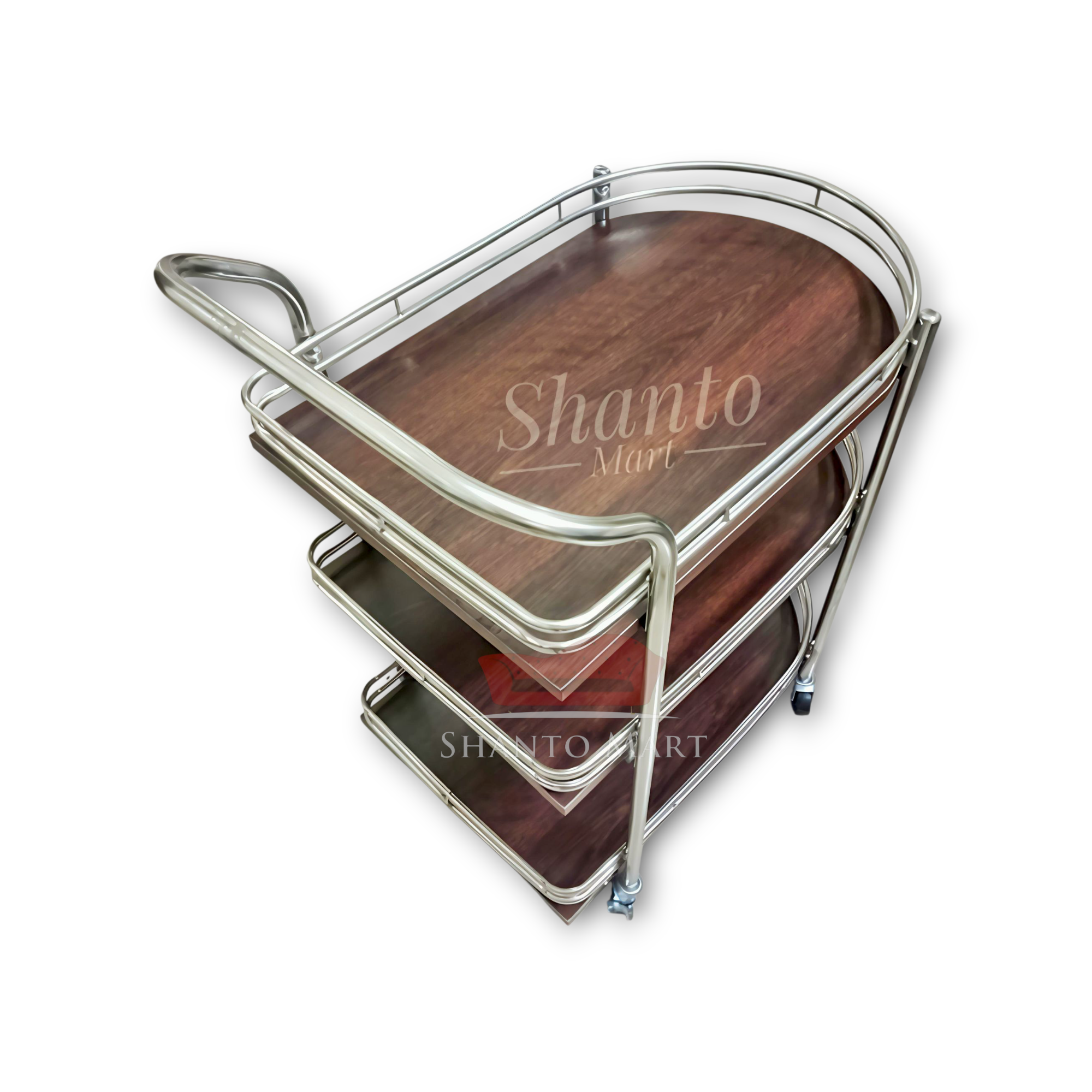 Enhance your hospitality with this durable and stylish 3 Layer Stainless Steel Tea Trolley – the perfect addition for effortless serving and organized living.